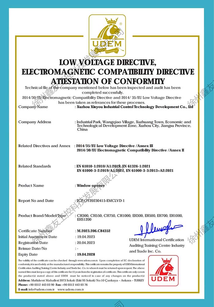 徐州鑫友工控科技發(fā)展有限公司成立于2008年,占地31600平方米,全資子公司:江蘇良紫工程科技有限公司,旗下 有“鑫友”及“MASTER.W主人窗控”兩個品牌系列,公司全面貫徹執(zhí)行IS09001:2015質(zhì)量管理體系標準,產(chǎn)品順利通過歐盟CE認證和中國***消防電子產(chǎn)品認證,通過可燃性粉塵環(huán)境下、爆炸性環(huán)境下防爆合格產(chǎn)品檢驗。排煙天窗整窗通過***消防產(chǎn)品質(zhì)量監(jiān)督檢驗中心檢測。先后獲得多項******及榮譽證書。集研發(fā)、加工、生產(chǎn)、制造、銷售、安裝及售后于一體,是一家高起點、研發(fā)能力強的專業(yè)智能化***技術(shù)企業(yè)。